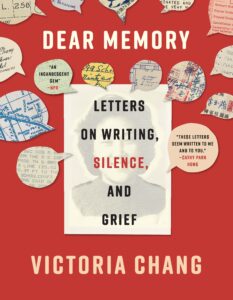 Victoria Chang’s Victoria Chang’s forthcoming book of poems, Tree of Knowledge will be published by Farrar, Straus & Giroux in the U.S. and Corsair/Little Brown in the U.K. in July 2026. Her latest book of poems, With My Back to the World was published in 2024 by Farrar, Straus & Giroux and Corsair Books in the U.K., and received the Forward Prize for Best Collection of Poetry, was named a finalist for the Kingsley Tufts Poetry Award, a finalist for the PEN/Jean Stein Book Award, and was named a Best Book of the Year by NPR, The Guardian, Lithub, and Electric Literature. Her most recent book of poetry, The Trees Witness Everything was published by Copper Canyon Press and Corsair Books in the U.K. in 2022, and was named one of the Best Books of 2022 by the New Yorker and The Guardian.